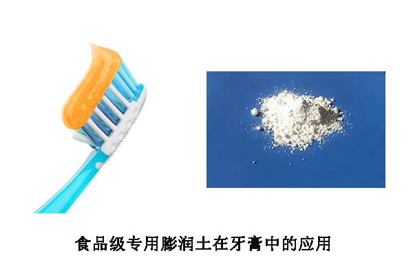 食品級專用膨潤土有很強的吸附性和增稠性。在牙膏的生產中加入膨潤土其主要目的就是增稠。由于膨潤土是一種無極天然礦物質,其本身無毒無味,另外又很好的滑膩感,對皮膚和口腔又很好的潤滑清爽效果。因此添加了食品級專用膨潤土的牙膏在使用的過程中,給人一種滑順、清涼的感覺。